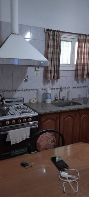 Se accede a la misma por living comedor amplio con ventanal hacia la calle, aire acondicionado, piso de granito. Arcada que separa el living comedor de la cocina comedor, la misma posee: mueble bajo mesada, campana sobre cocina, ventana hacia el frente, mesada de granito con bacha de acero inoxidable, calefon, sector para heladera...puerta que conecta la cocina con el lavadero. En lavadero: pileta de lavar, mueble, conexion para lavarropas y puerta de acceso a entrada para autos.