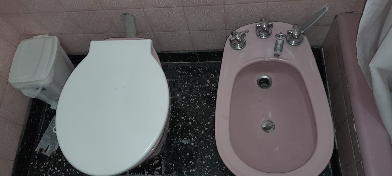Baño completo, inodoro, bidet, ducha, lavatorio y botiquin.