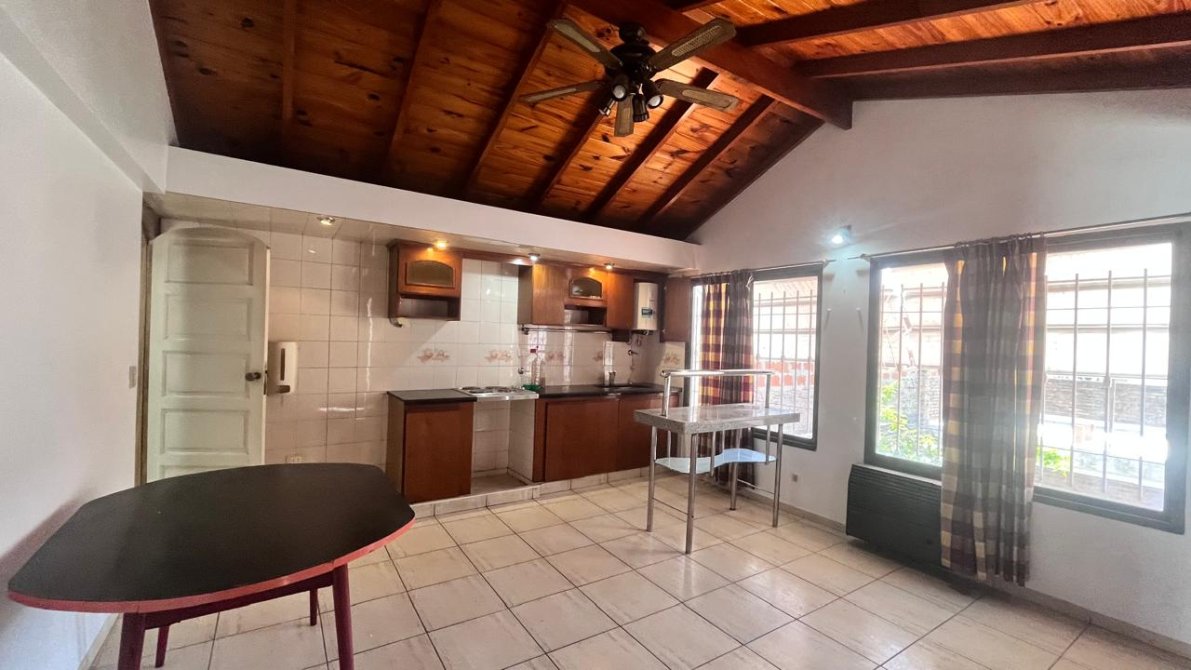 Al ingresar, te recibe una cocina-comedor completa, con muebles sobre y bajo mesada y una gran ventana que deja entrar la luz natural durante todo el día. El espacio es amplio y funcional, con la posibilidad de adaptarlo como living, comedor y dormitorio, todo en un ambiente cómodo y bien distribuido.