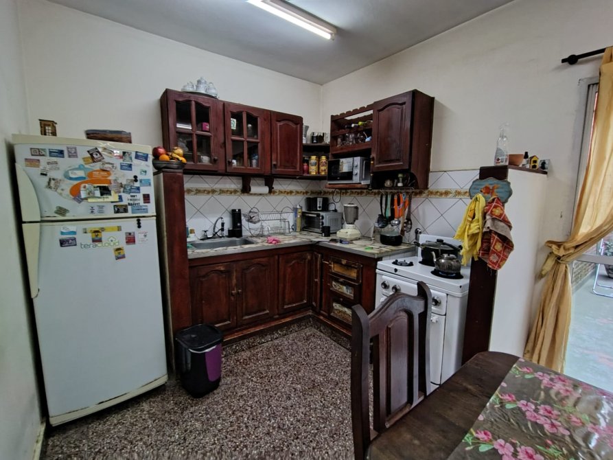 Espectacular patio de entrada, acceso a la vivenda por living comedor con cocina integrada, en cocina: muebles bajo mesada, alacenas colgantes, salida por purta balcon a segundo patio donde se encuentra el lavadero y la parrilla.