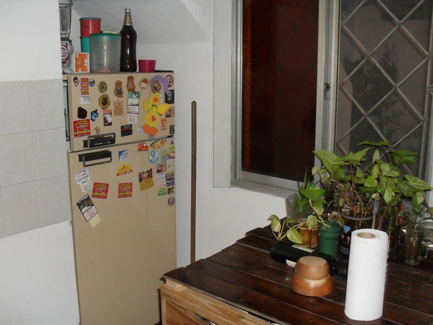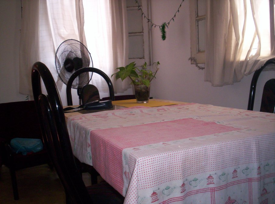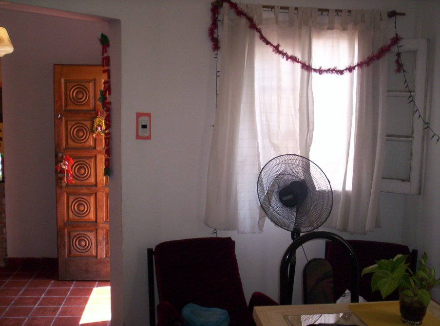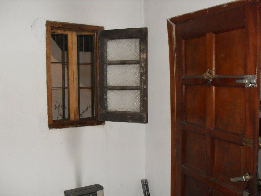 Comedor con puerta a patio 1, ventana hacia pasillo comun y ventana hacia patio 2.