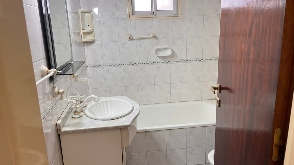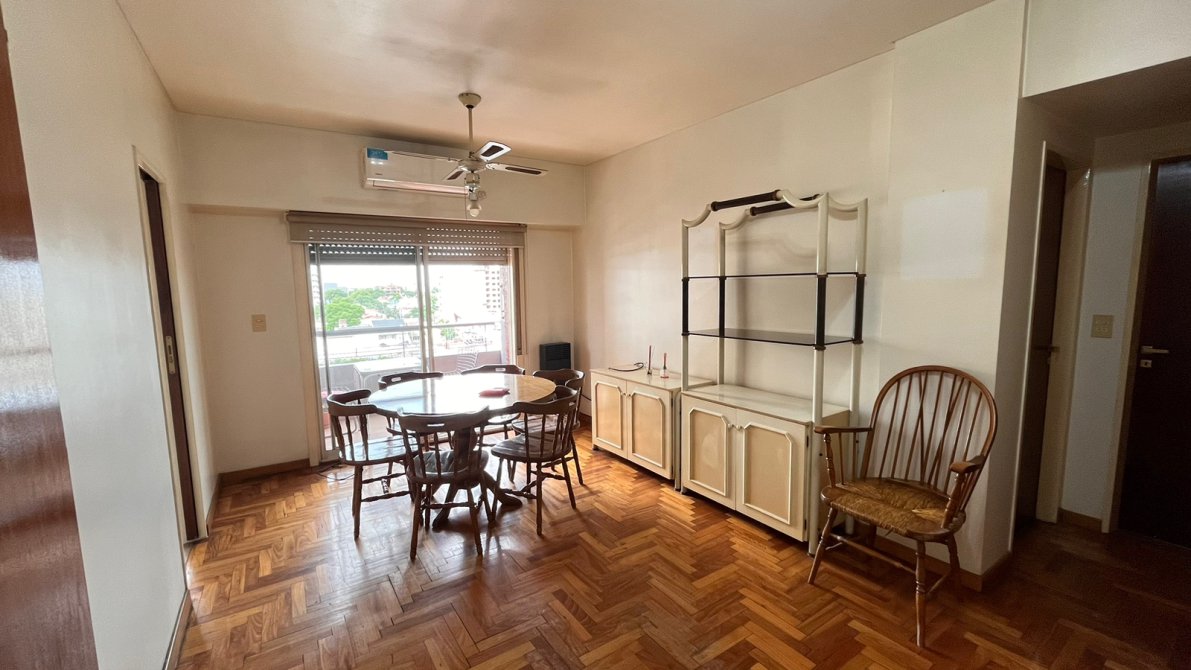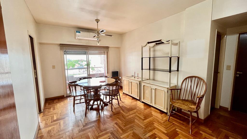 Este es un departamento al frente con un comodo balcon con acceso desde el comedor, la cocina es amplia con muebles sobre y bajo mesada, mesada de granito bordo, artefacto de cocina , calefon , un lavadero con conexio para lavarropas, y pileta de lavar con doble ventana , por lo cual tiene una muy buena iluminacion y ventilacion y mucha iluminacion, living comedor con split frio calor , ventilador de techo con sus respectivas luminarias, ventana con puerta corrediza y perciana al balcon con vista panoramica, pisos parquet plastificados, distribuidor con placard embutido, dormitorio con amplia ventana con perciana de plastico, split aire frio, ventilador de techo con su plafon, placard embutido con interiores, baño completo con vanitory, espejo con tulipas cuadro completo de ducha, ventana corrediza de ventilacion, inodoro con mochila, y videt , y baulera