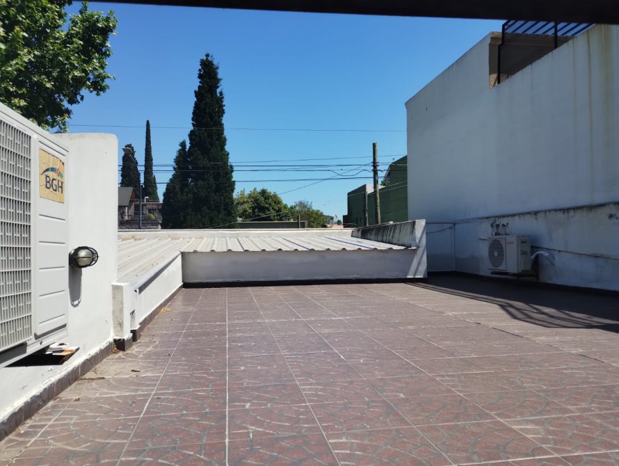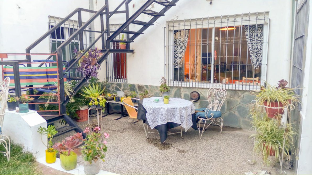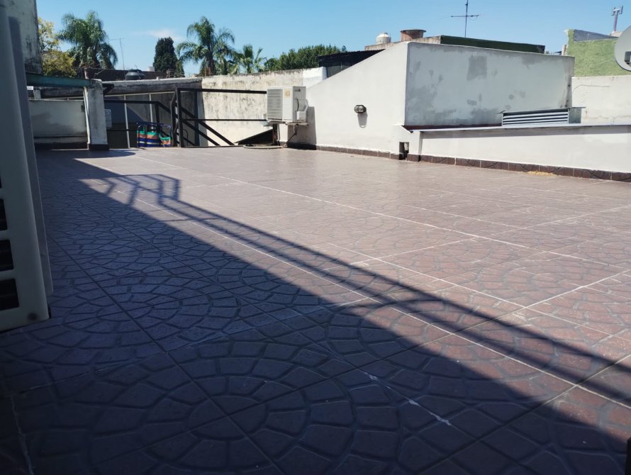 Tiraron abajo parte del galpón y unos pequeños ambientes logrando más parque. Contra la última medianera el quincho con frente vidriado y cerramientos de aluminio anodizado blanco más ventiluz superior, los techos son de chapa antiguos pero en perfectas condiciones de mantenimiento, a la parrilla y la cocina con canilla mezcladora nueva instalación de gas y un artefacto de cocina. Los pisos son de cemento Detalles destacados: cocina y living comedor los techos son de losa. Y tiene escalera desde el patio que accede a esta terraza con escalones de malla shulman. Todas las aberturas tienen sus respectivas rejas. La estructura es fuerte presenta paredes de 45 y no tiene daños que la perjudiquen.