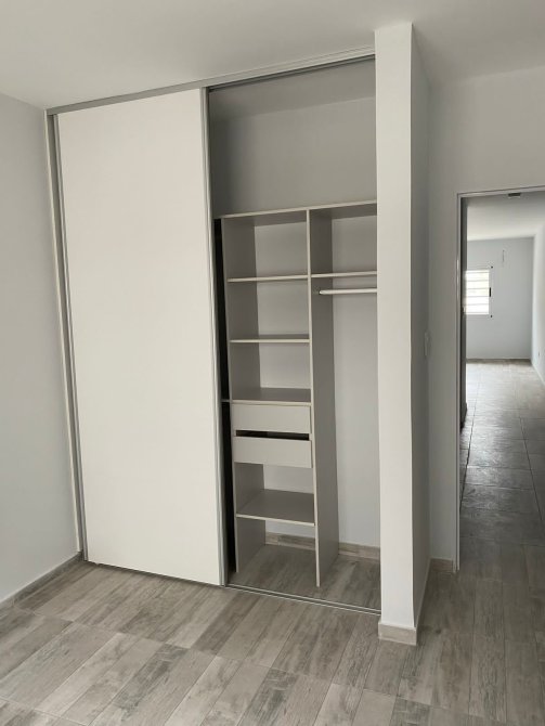 Living-comedor con pisos cerámicos símil madera color gris (ventana con rejas) -Cocina semi-integrada con mesada de mármol gris granito y muebles alto y bajo mesada completos -Baño completo con vanitory, accesorios completos colocados y cuadro de ducha -Ámplio dormitorio con placard empotrado con interiores completo Se entrega con artefacto de cocina y spar colocados e iluminación led completa en todo el departamento. 1° piso por escalera.