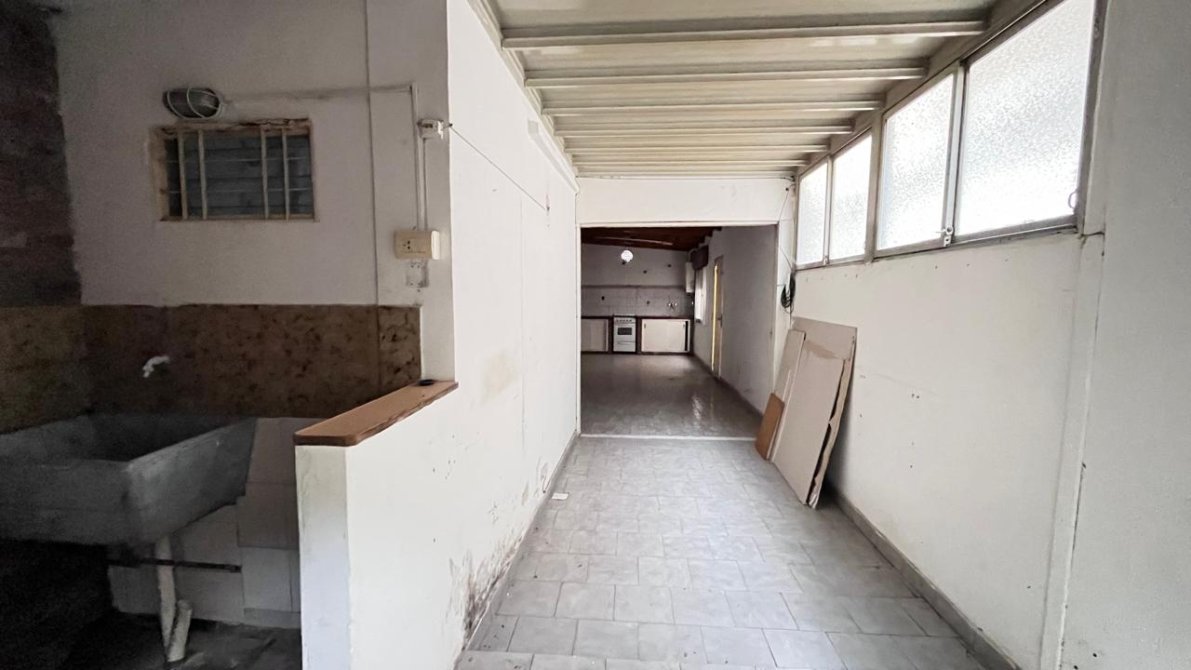 Se ingresa a una amplia cocina comedor con muebles bajo mesada y artefacto de cocina, baño coninodoro, bidet, vanitory, ducha con pie de ducha azulejado hasta el techo , un dormitorio con ventana al patio , lavadero cubierto y posibilidades de realizar un segundo dormitorio.