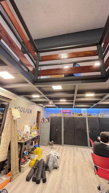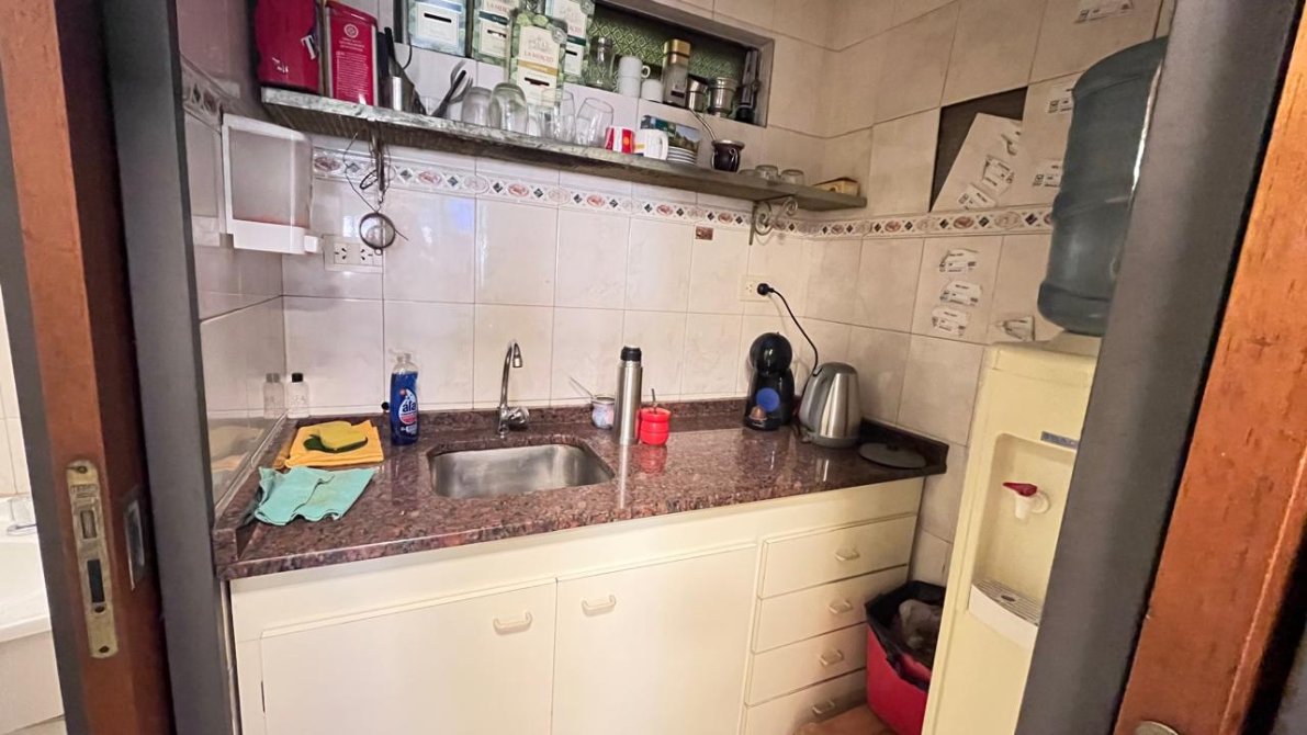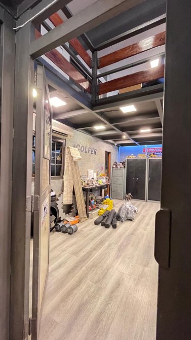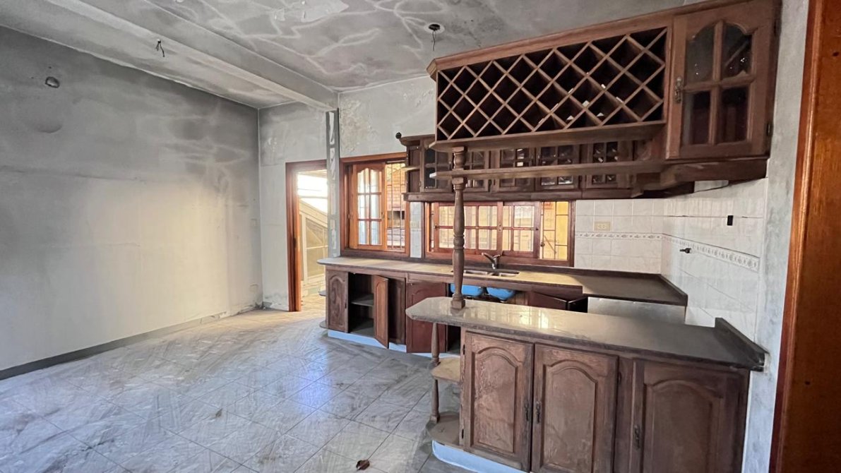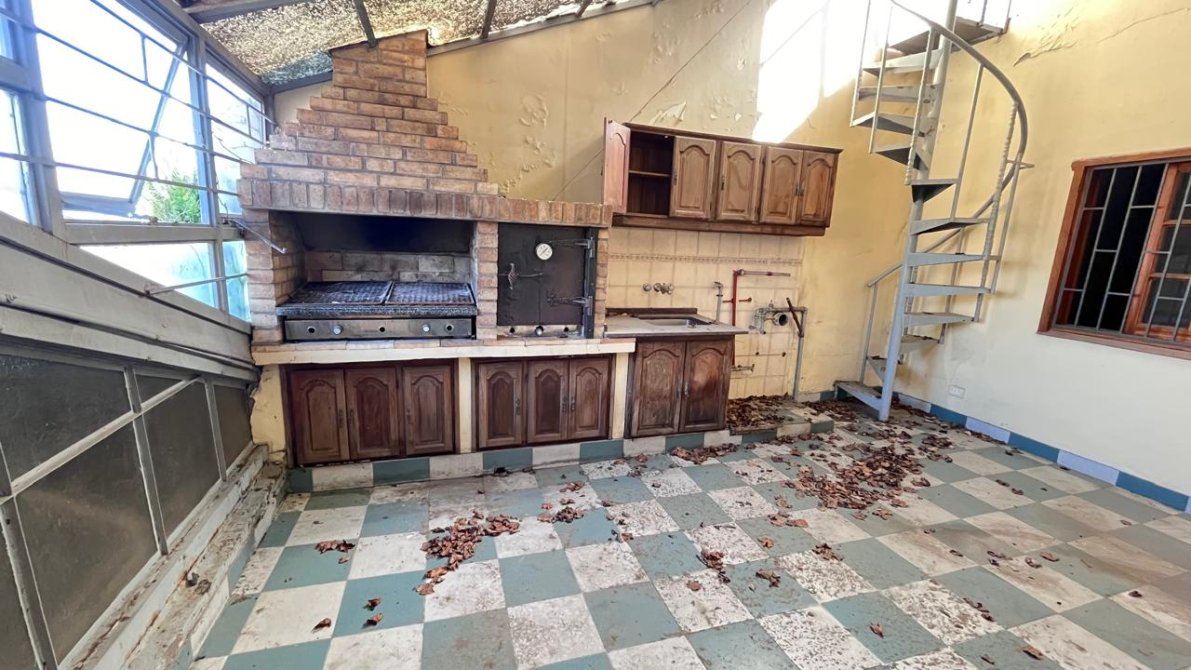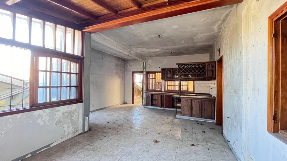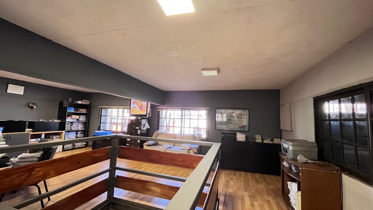 Además, en la planta alta, encontramos una segunda oficina y, casi al final del galpón, una escalera nos lleva a una vivienda con un living comedor amplio, una cocina con sobre y bajo mesada, dos dormitorios y un baño. Si bien la casa requiere de algunas mejoras, es un espacio lleno de potencial.