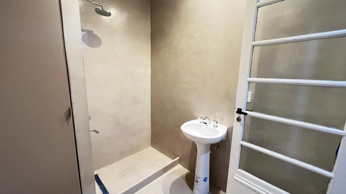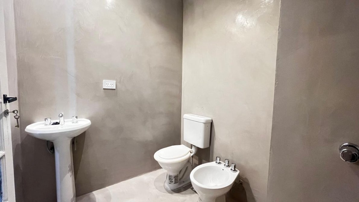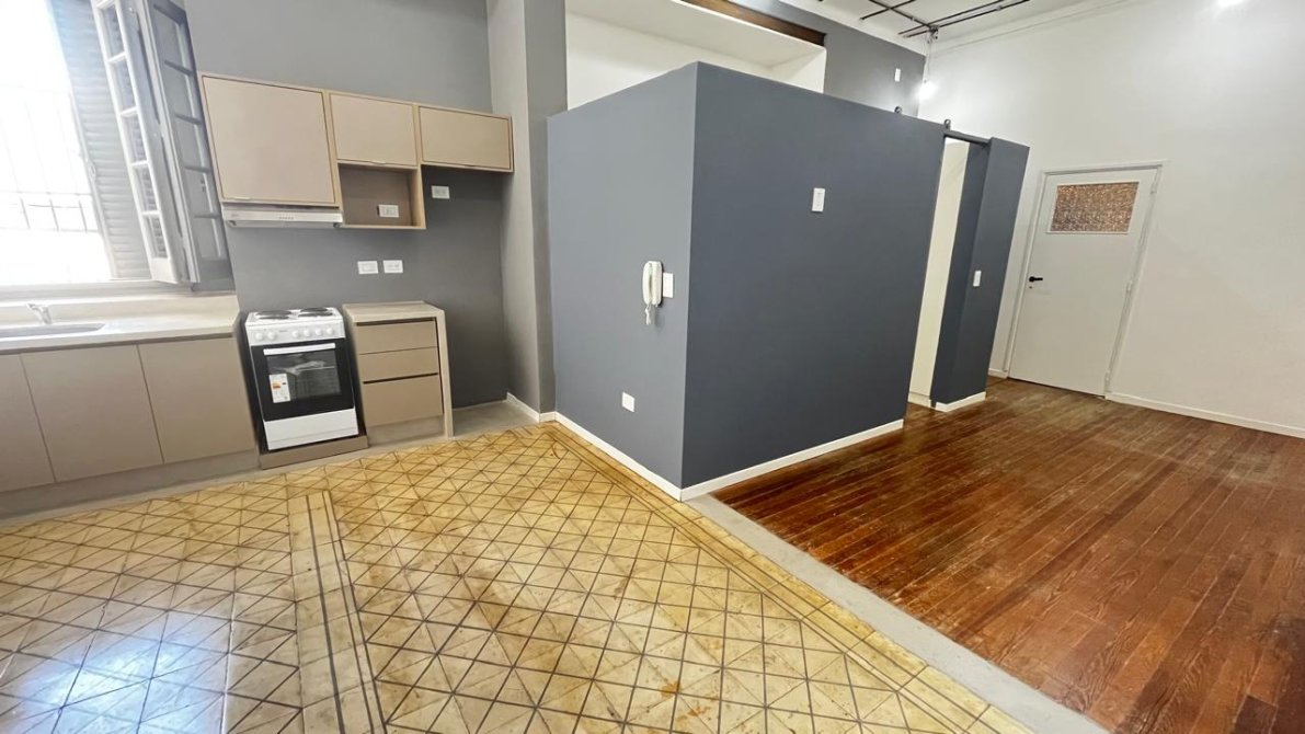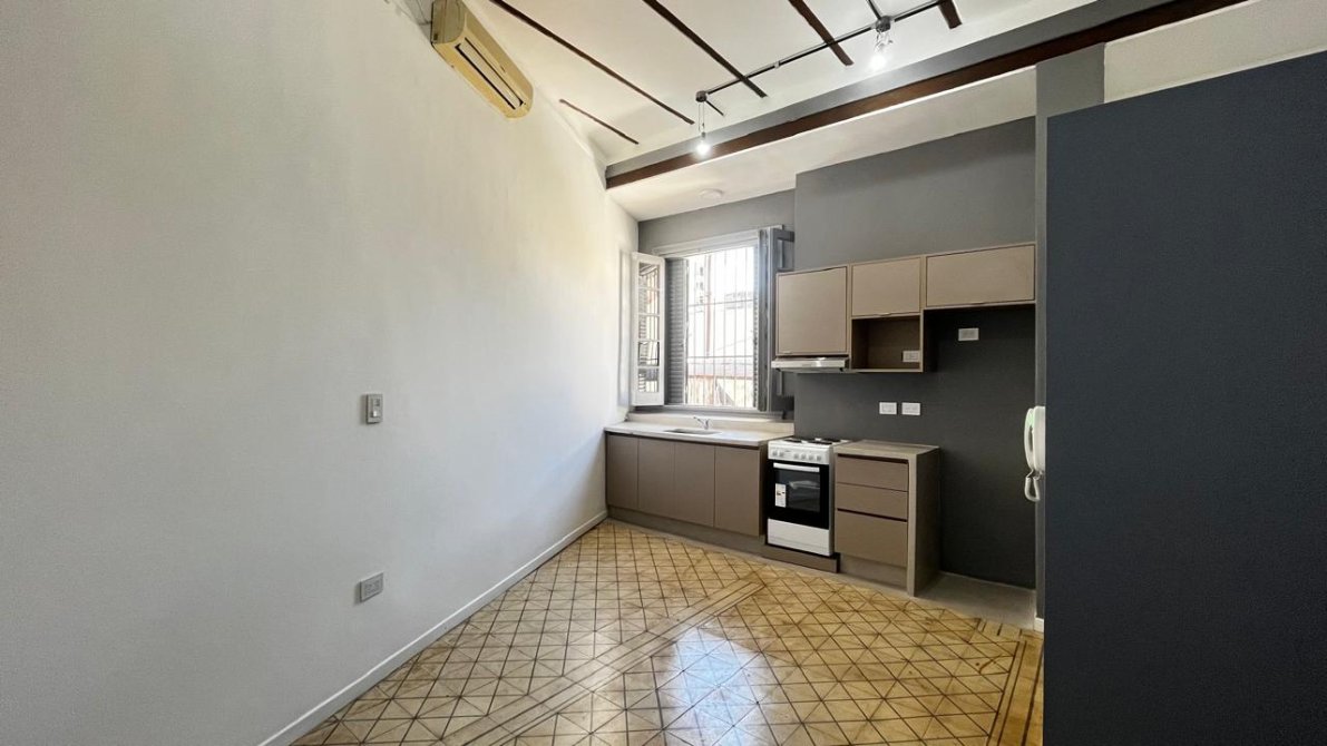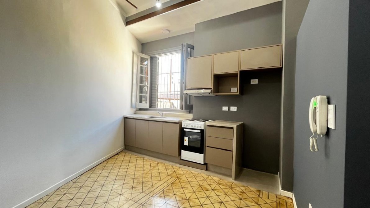 Al ingresar, te vas a encontrar con una cocina comedor cómoda, luminosa, con muebles nuevos de bajo mesada y alacena, pensada para que puedas cocinar rico y disfrutar del día a día. El piso de microcemento se combina con los calcáreos originales, y los ventanales de madera restaurados traen ese encanto clásico que enamora.