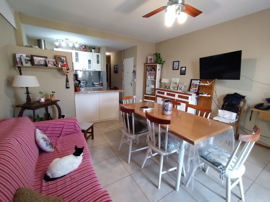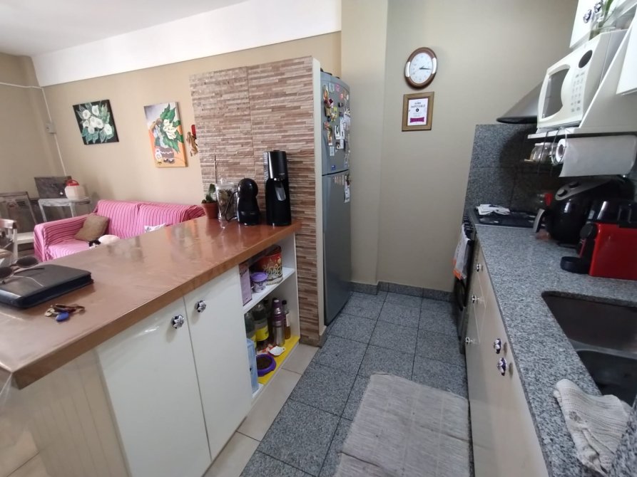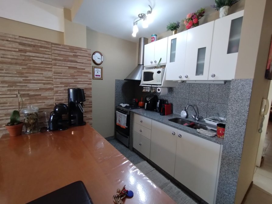 Se accede por living comedor con salida a balcón aterrazado, con aire acondicionado frío-calor. Cocina semi integrada con alacenas colgantes y muebles bajo mesada nuevos y barra desayunadora de madera.