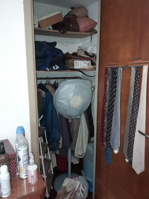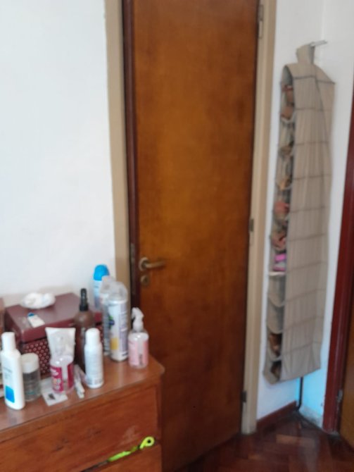 Hall de distribucion hacia dormitorio y baño, con un importante placard empotrado y baulera. Dormitorio con amplio ventana y placard empotrado.